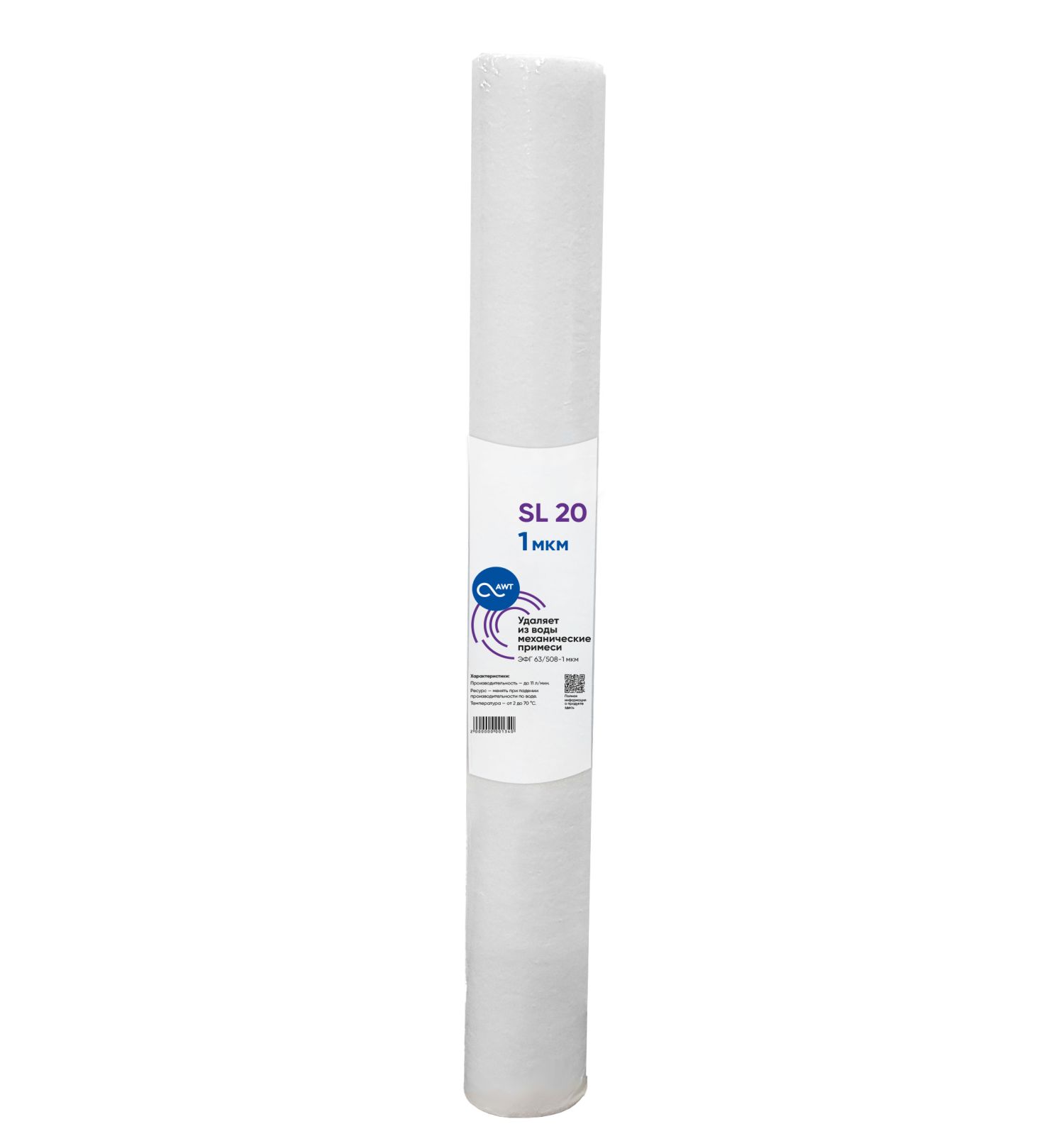 Купить картридж механической очистки AWT ЭФГ 63/508-1 (SL20) — фильтрующий элемент из полипропилена для эффективного удаления из воды песка, ржавчины, грязи и других нерастворимых примесей. Картридж подходит для систем стандарта SL20, рассчитан на работу как с холодной, так и с горячей водой, а его глубинная структура обеспечивает высокую грязеёмкость и стабильную производительность. Практичное решение для тех, кто хочет заказать картридж механической очистки SL20 для бытовой или коммерческой системы водоподготовки.