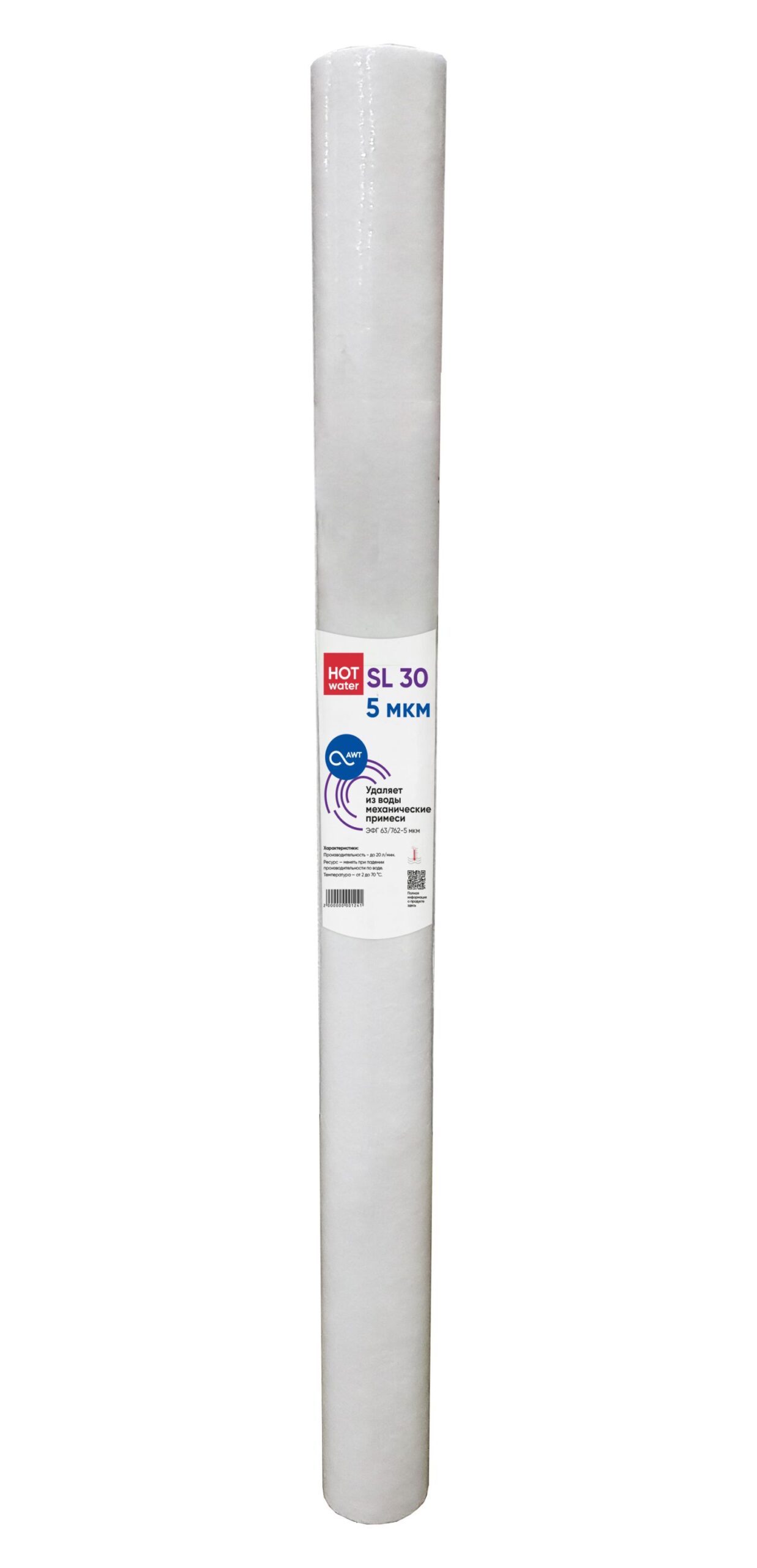 Купить картридж механической очистки AWT ЭФГ 63/762-5 «Г» (SL30) — фильтрующий элемент из полипропилена для эффективного удаления из воды песка, ржавчины, грязи и других нерастворимых примесей. Картридж подходит для систем стандарта SL30, рассчитан на работу как с холодной, так и с горячей водой, а его глубинная структура обеспечивает высокую грязеёмкость и стабильную производительность. Практичное решение для тех, кто хочет заказать картридж механической очистки SL30 для бытовой или коммерческой системы водоподготовки.
