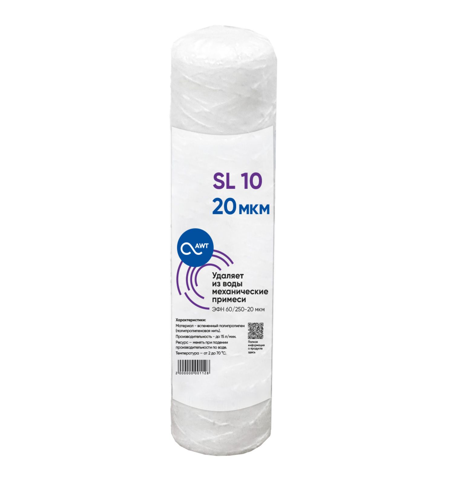 Купить картридж намоточный механической очистки AWT ЭФН 60/250-20 (SL10) — фильтрующий элемент из полипропиленовой нити на жёстком полиэтиленовом каркасе, предназначенный для удаления из воды механических примесей. Картридж подходит для стандартных корпусов формата SL10 и используется для предварительной фильтрации воды в бытовых и коммерческих системах. Практичное решение для тех, кто хочет заказать намоточный картридж механической очистки SL10 для стабильной и эффективной работы системы водоподготовки.
