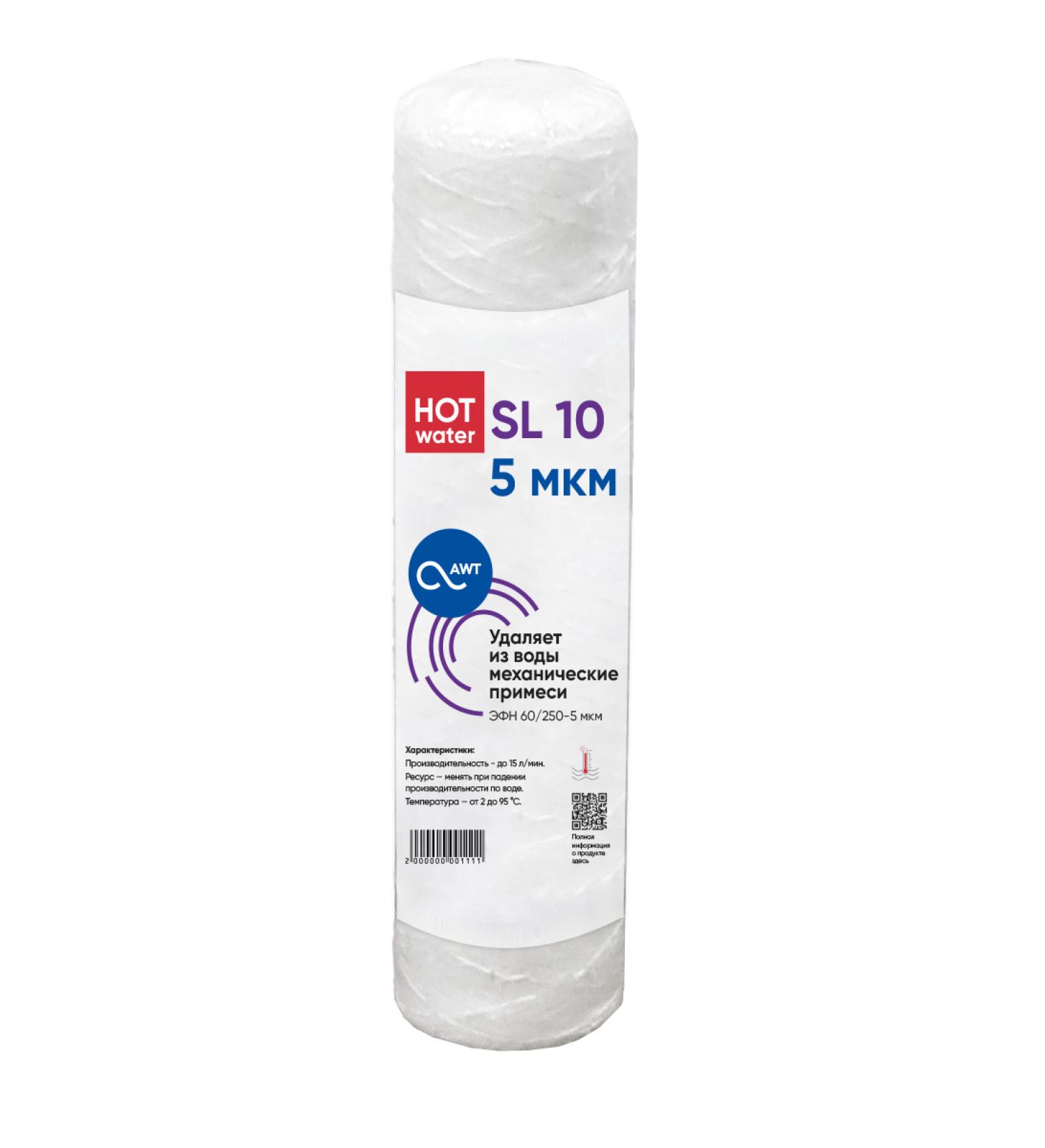 Купить картридж намоточный механической очистки AWT ЭФН 60/250-5 «Г» (SL10) — фильтрующий элемент для удаления из воды механических примесей в системах водоочистки стандарта SL10. Картридж предназначен для механической фильтрации воды и подходит для использования в бытовых и коммерческих системах. Практичное решение для тех, кто хочет заказать намоточный картридж механической очистки SL10 для стабильной и эффективной предварительной водоподготовки.
