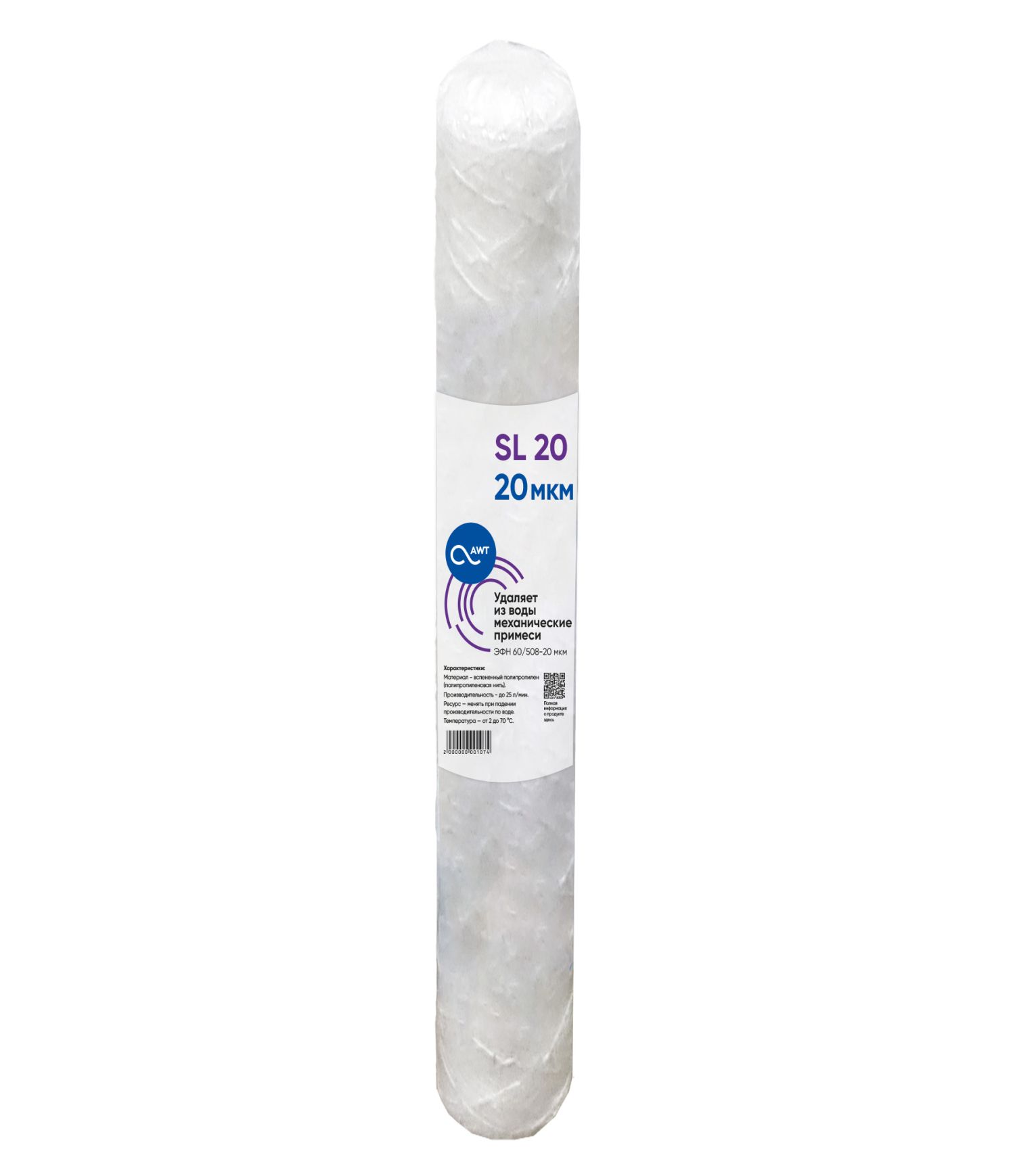 Купить картридж намоточный механической очистки AWT ЭФН 60/508-20 (SL20) — фильтрующий элемент из полипропиленовой нити для удаления из воды песка, ржавчины, ила и других механических примесей. Картридж предназначен для магистральных фильтров стандарта SL20, отличается высокой грязеёмкостью и подходит для защиты бытовой техники и водонагревательного оборудования. Практичное решение для тех, кто хочет заказать намоточный картридж механической очистки SL20 для бытовой системы водоочистки.