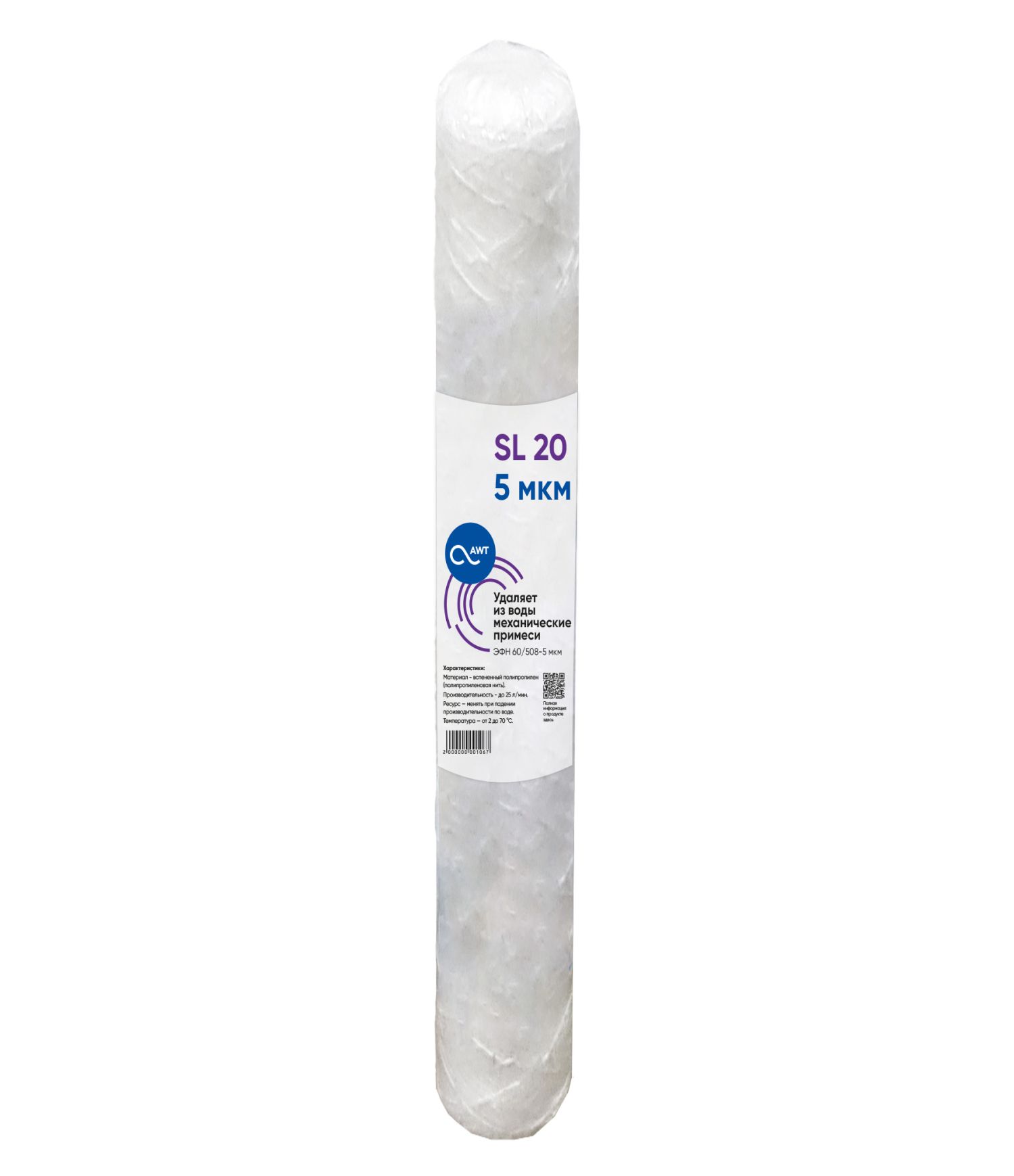 Купить картридж намоточный механической очистки AWT ЭФН 60/508-5 «Г» (SL20) — фильтрующий элемент из полипропиленовой нити для эффективного удаления из воды песка, ржавчины, ила и других механических примесей. Картридж подходит для систем стандарта SL20, применяется в магистральных фильтрах и отличается повышенной грязеёмкостью за счёт намоточной структуры. Практичное решение для тех, кто хочет заказать намоточный картридж механической очистки SL20 для защиты бытовой техники, водонагревателей и элементов системы водоснабжения.